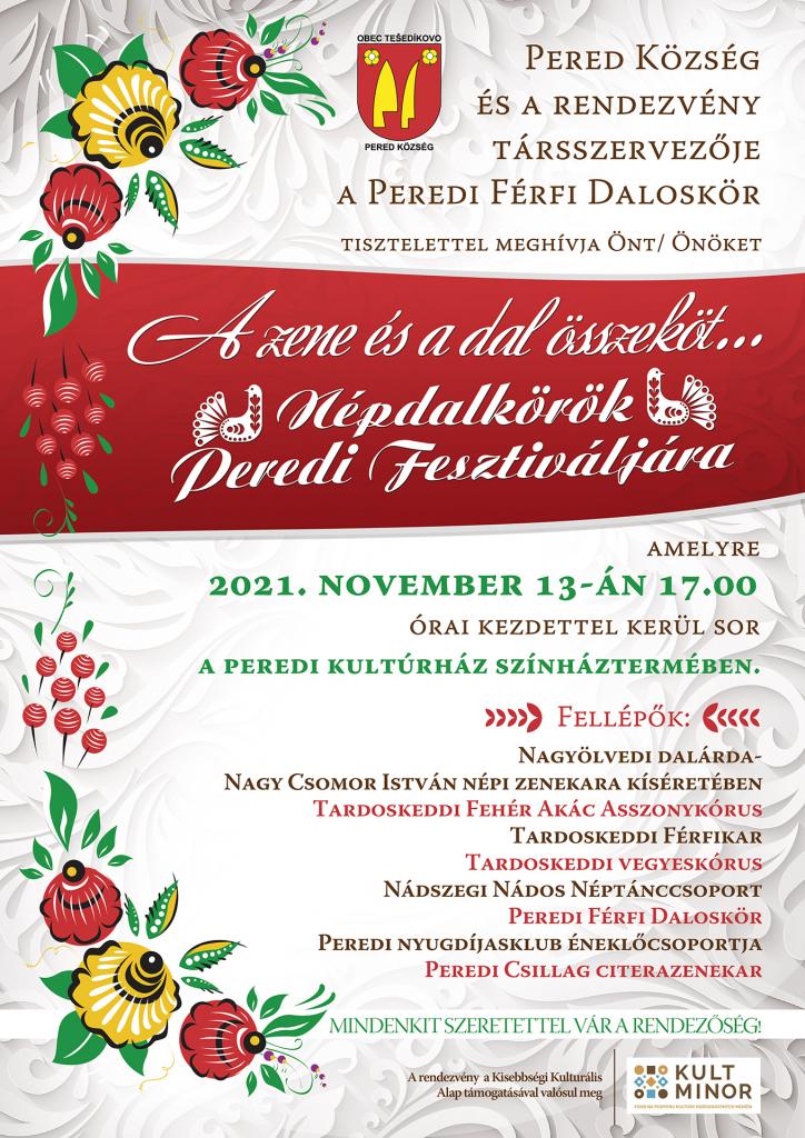 A zene és a dal összeköt - Népdalkörök Peredi Fesztiválja Helyszín: Peredi Kultúrház Időpont: 2021. november 13., 17.00 óra