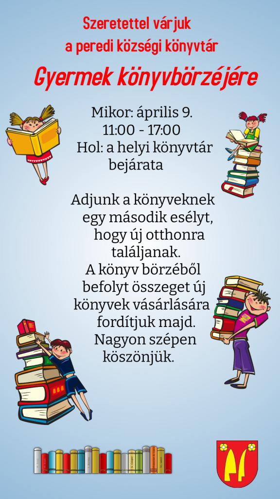 Mindenkit szeretettel várunk szombaton gyerek könyvek börzéjére a könyvtár bejáratánál.
