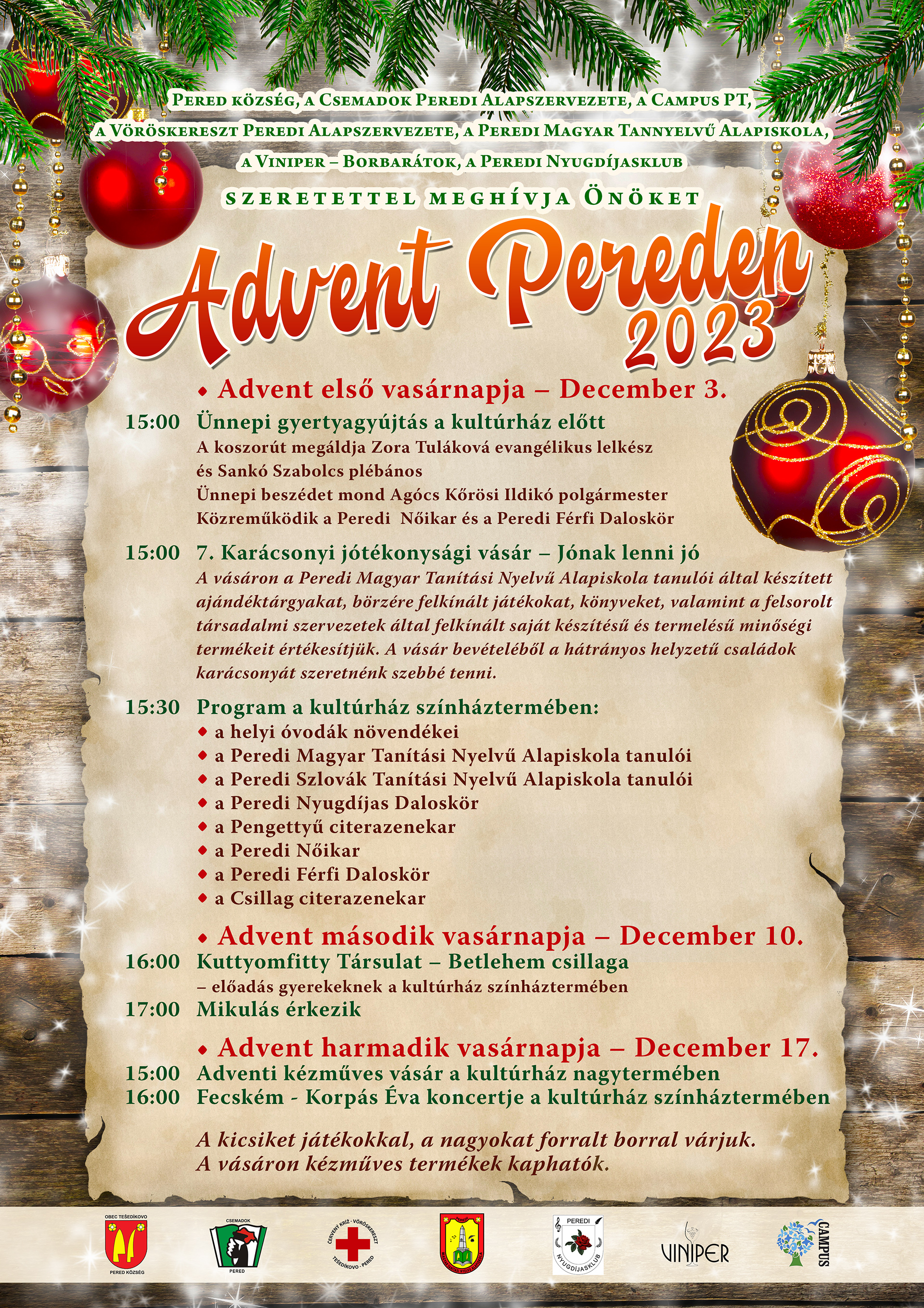 Pered község szeretettel meghívja Önöket - "Advent Pereden 2023":