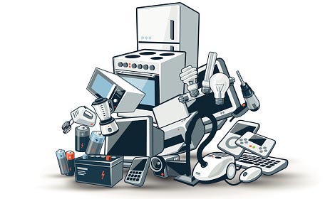 - hűtőt, mosógépet, sütőt, mikrosütőt, porszívót, varrógépet, vasalót, számítógépet, nyomtatót, elemeket, fényforrásokat, fúrókat, fűnyírókat, elektromos játékokat, akkumulátorokat, stb.