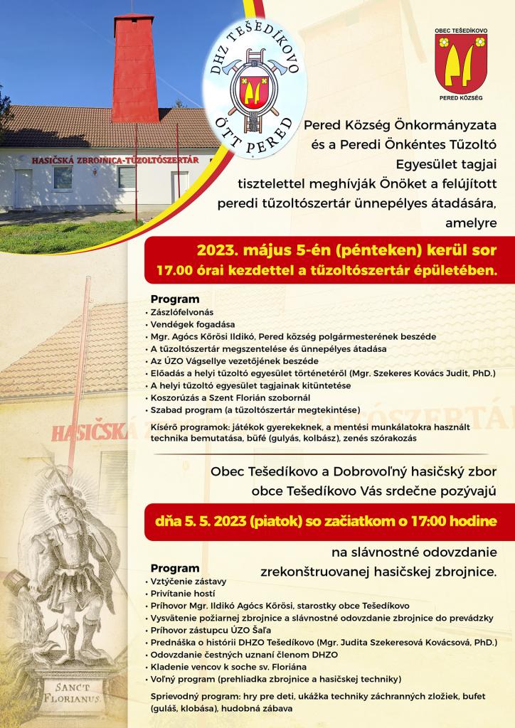 Meghívó a peredi tűzoltószertár ünnepélyes átadására