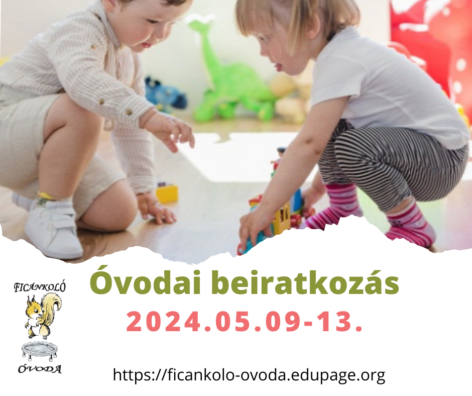 Értesítjük Önöket, hogy a 2024/2025-ös tanévre az óvodai beiratkozás 2024. május 9 - 13. között zajlik. A beíratkozással kapcsolatos bővebb tájékoztatót, valamint a beíratkozás feltételeit a mellékelt dokumentumban olvashatják:
