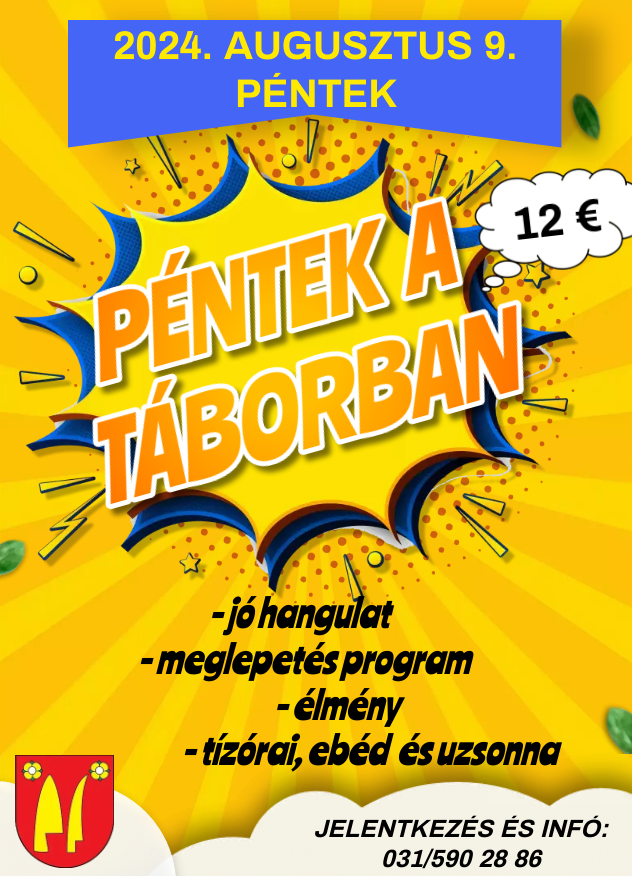 Szeretnéd átélni egy napra a táboros hangulatot? Van egy jó hírünk! Augusztus 9-én jöhetsz és szórakozhatsz velünk egy nagyot. Programok, barátok, szórakozás, tízórai, ebéd és uzsonna, délután pedig egy meglepi program vár Rád a peredi futballpályán.
