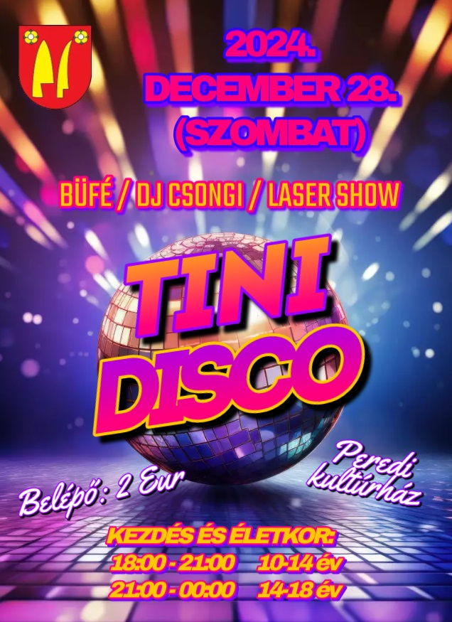 Pered község szeretettel meghívja a fiatalokat 10 és 18 év között az év végi tini diszkóra, amelyre december 28-án (szombat) kerül sor 18 órától a helyi kultúrház nagytermében. A zenéről és jó hangulatról DJ Csongi gondoskodik. A belépő 2 Eur, büfé is várja a diszkóra látogatókat. Gyertek és bulizzatok egy jót a barátaitokkal.