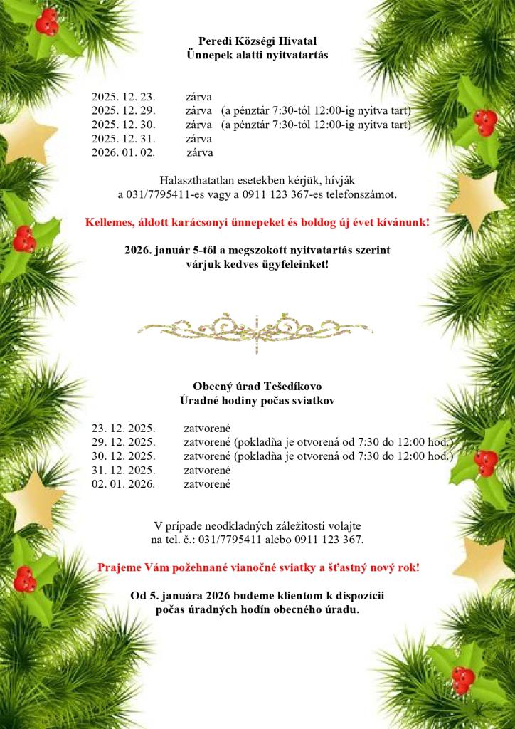 Otváracie hodiny obecného úradu počas vianočných sviatkov