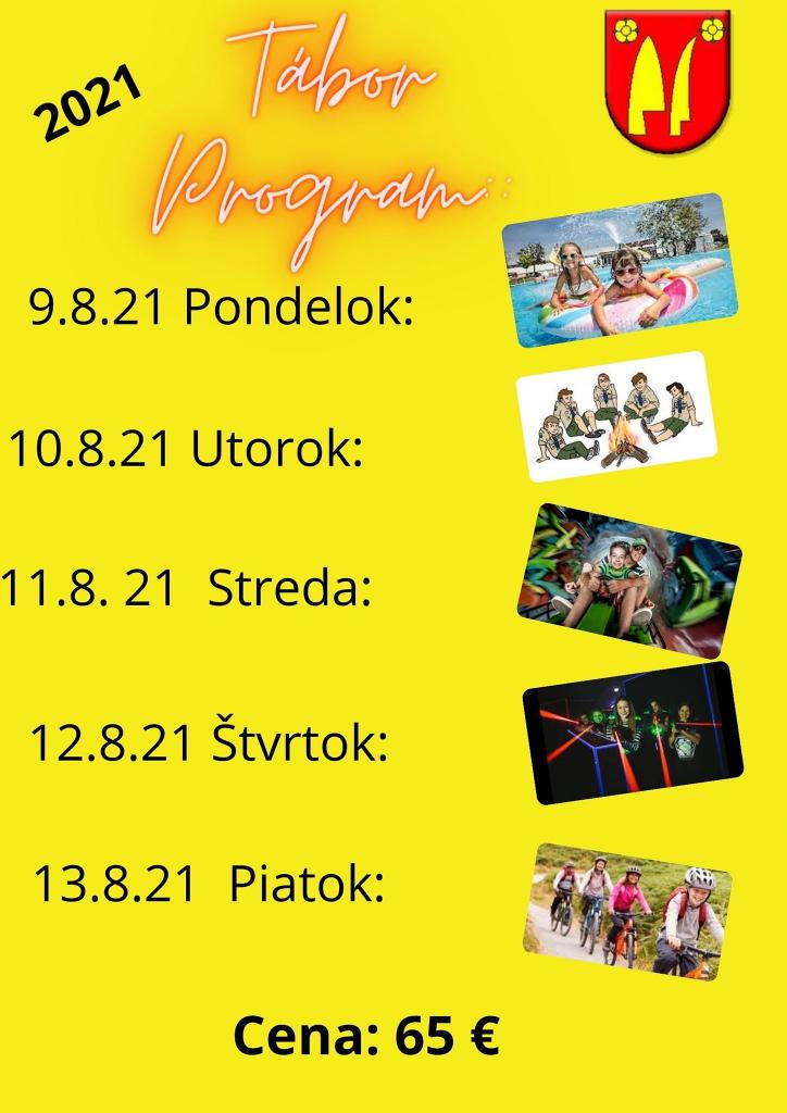 Štvrtok: Laser aréna - Trnava - virtuálne hry Tento deň je na pláne stanovanie (so spaním na mieste) na miestnom futbalovom ihrisku, večer: letné kino, táborový oheň